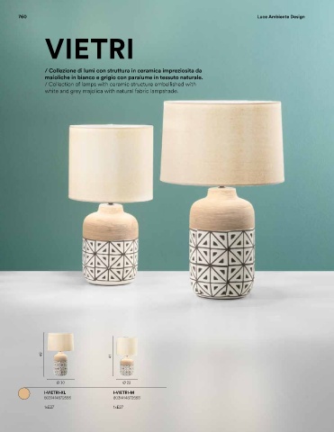 maioliche in bianco e grigio con paralume in tessuto naturale.