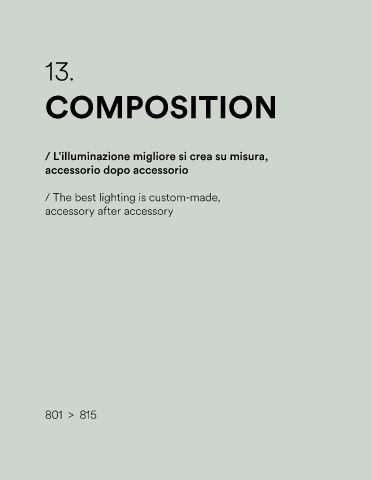 13. COMPOSITION / L’illuminazione migliore si crea su misura, accessorio dopo accessorio / The best lighting is custom-made, accessory after accessory 801 > 815