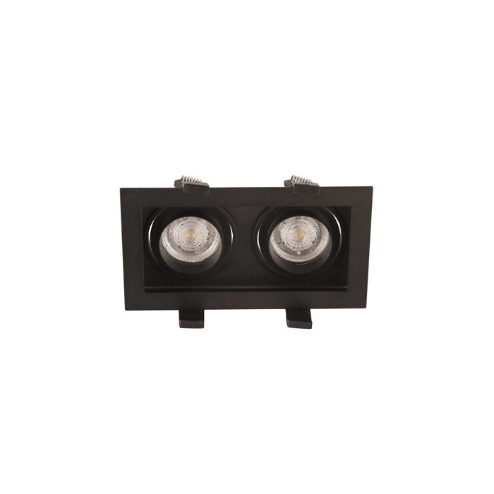 O Aro GU10 Cedi Orientável Duplo Preto IP20 (9430552) é uma solução de iluminação técnica de embutir que oferece uma performance duplicada e um design moderno. Fabricado em alumínio, este suporte garante uma estrutura robusta e uma excelente condutividade térmica, o que é essencial para a dissipação eficiente do calor gerado pelas lâmpadas e para a preservação da eletrónica dos componentes LED. O seu acabamento em preto mate confere-lhe uma estética industrial e sofisticada, ideal para ambientes contemporâneos.