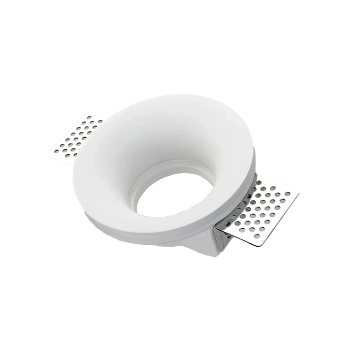 O Aro GU10 Fixo Recuado em Gesso é a solução premium de iluminação técnica para projetos de interior que procuram um efeito luminoso totalmente discreto e integrado. Fabricado em Gesso, este aro de encastrar é projetado para ser pintado e estucado no teto, criando um acabamento trimless (sem moldura) e completamente invisível.