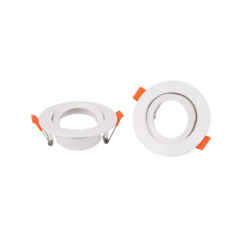 O Aro GU10 Oniro Orientável Redondo Branco IP20 é um suporte de encastrar versátil, desenhado para oferecer um controlo preciso sobre a direção da luz em ambientes interiores. A sua estrutura em ABS branco proporciona um acabamento limpo e discreto que se integra perfeitamente na maioria dos tetos falsos, sendo um material leve que facilita o manuseamento durante a instalação.