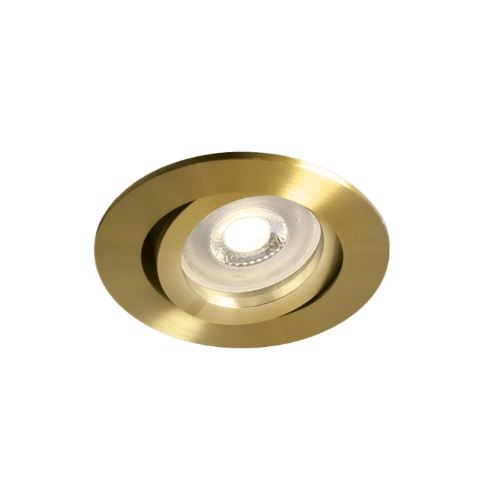 O Aro GU10 Orientável Redondo Dourado IP20 (11105A1/BBS) é um suporte de iluminação de encastrar que se destaca pelo seu acabamento metálico premium e funcionalidade dinâmica. Ao contrário dos modelos em material sintético, este aro é fabricado em alumínio, o que lhe confere uma durabilidade superior e uma estética mais refinada, ideal para projetos de design de interiores que procuram um toque de luxo e sofisticação.