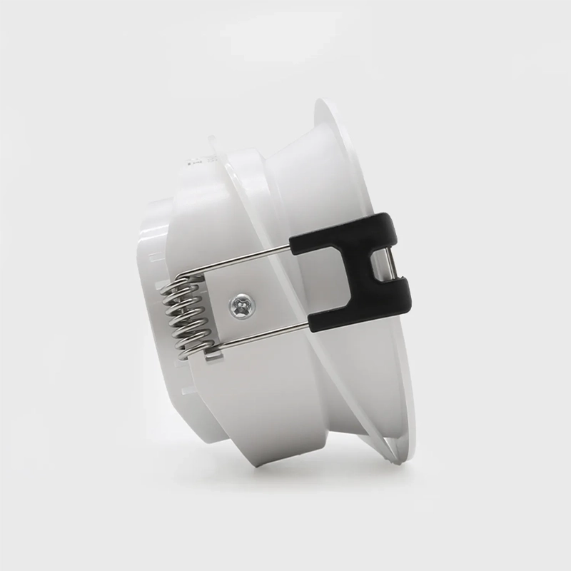 A instalação é otimizada para tetos falsos com um furo de corte de Ø72 mm, onde o sistema de molas assegura uma fixação firme e um ajuste nivelado à superfície. Sendo compatível com lâmpadas LED GU10 ou MR16, este aro oferece total versatilidade na escolha da intensidade e do tom de luz, permitindo que a iluminação técnica se adapte perfeitamente às exigências do projeto arquitetónico sem comprometer a segurança elétrica.