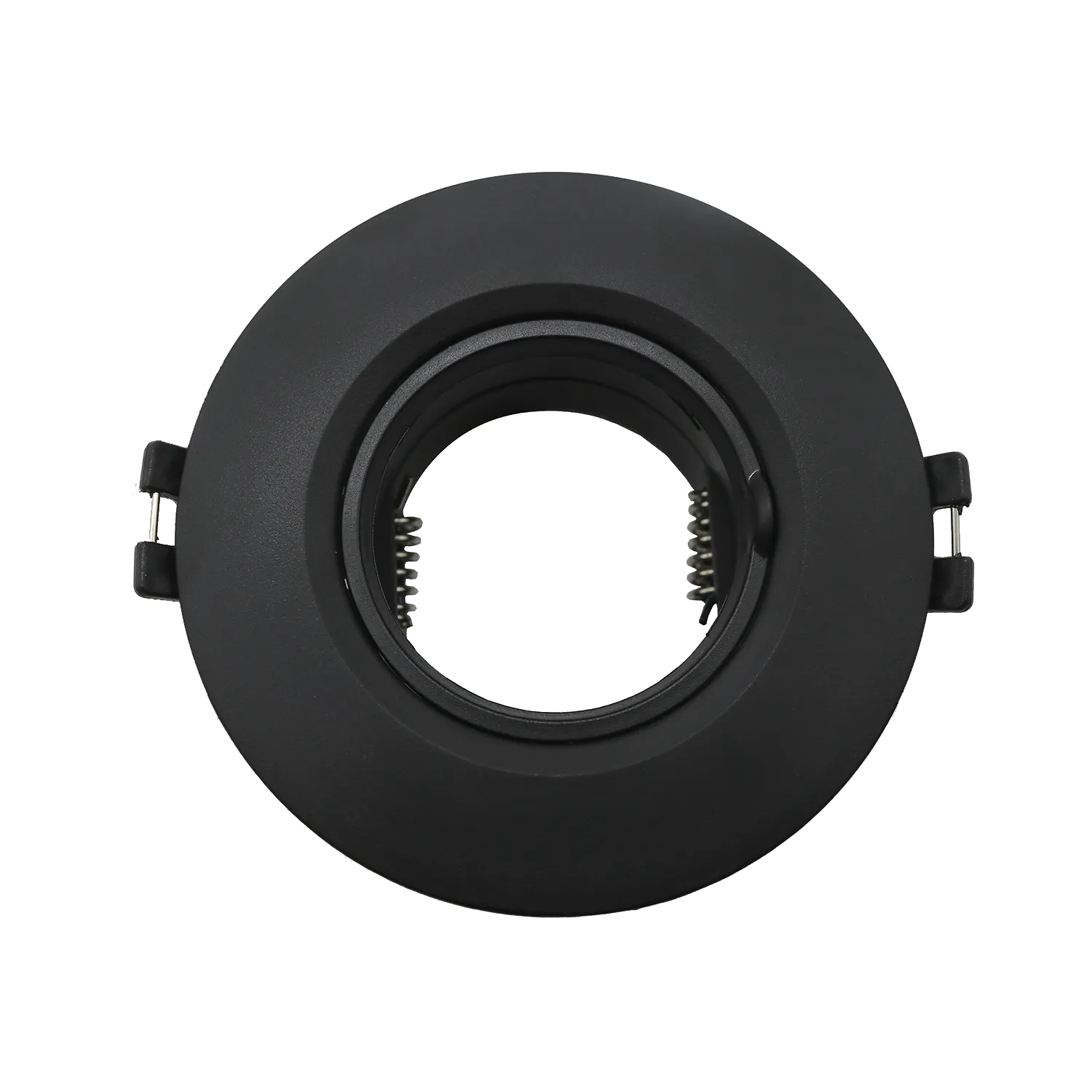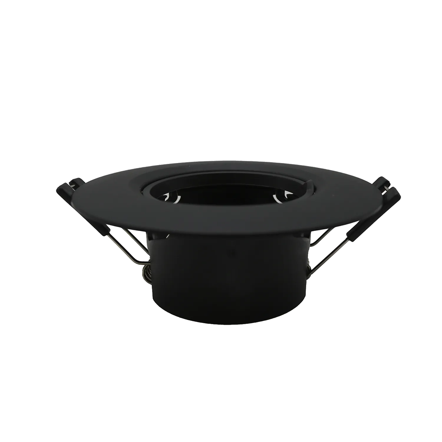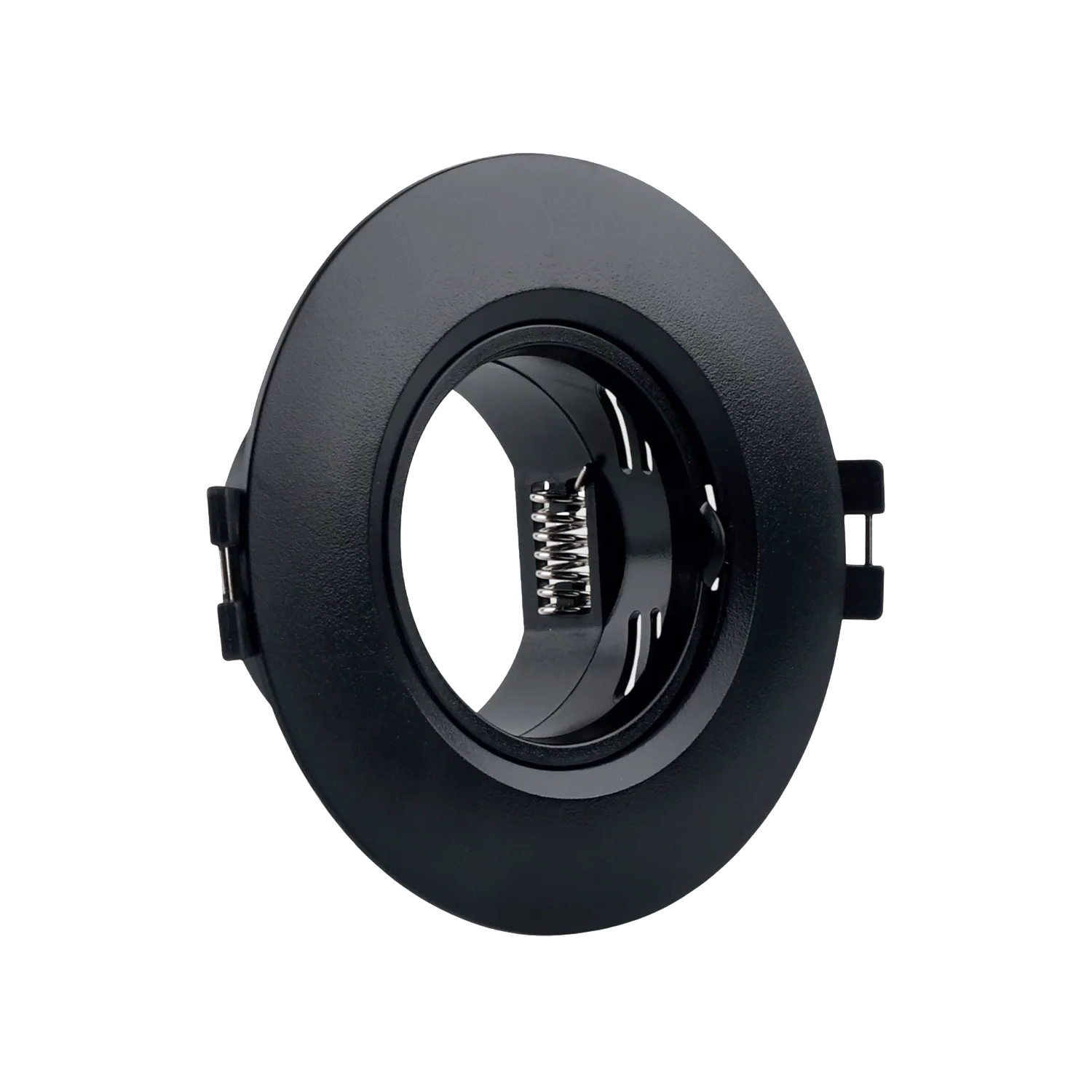 O Aro GU10 PC Fixo Redondo Preto IP20 é uma solução de embutir elegante e moderna, ideal para quem procura um contraste sofisticado no teto ou uma integração discreta em superfícies escuras. Fabricado em policarbonato com um acabamento em preto texturizado, este suporte oferece durabilidade e resistência num design compacto de Ø90 x 35 mm.