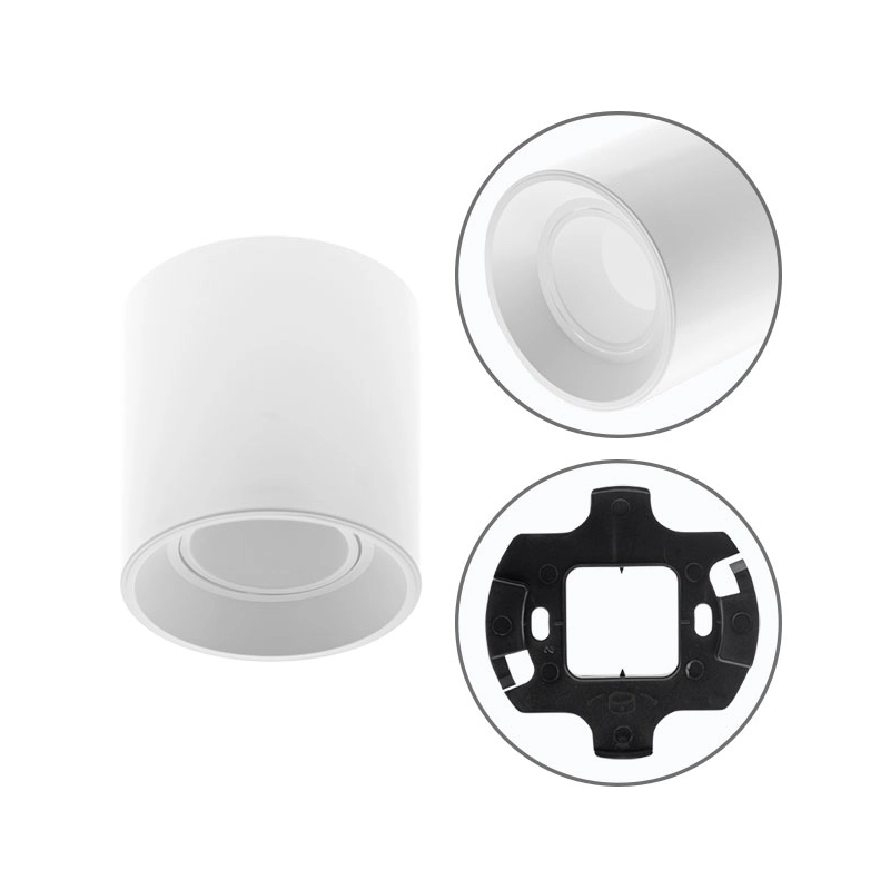 Ao contrário dos modelos de encastrar, este aro projeta-se para fora da superfície com um formato cilíndrico minimalista, tornando-se um elemento decorativo visível. O dispositivo é compatível com lâmpadas LED GU10 ou MR16, o que garante flexibilidade total na personalização da intensidade da luz e da temperatura de cor de acordo com a necessidade do ambiente.