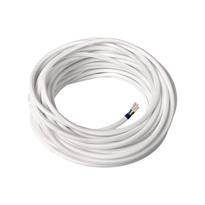 O cabo é um modelo Simples, com uma secção de 0.75mm2, ideal para a maioria das aplicações de baixa potência, como lâmpadas LED decorativas. O seu revestimento exterior é em Material Têxtil, de cor Branca Pura, perfeito para espaços de estilo Nórdico, Minimalista ou para criar um contraste simples em tetos escuros.