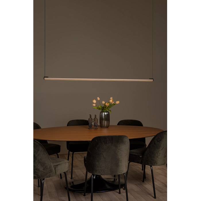 A estrutura em alumínio de acabamento castanho destaca-se pelo toque contemporâneo e requintado, tornando este candeeiro uma peça versátil para salas, escritórios, halls ou áreas de convívio.