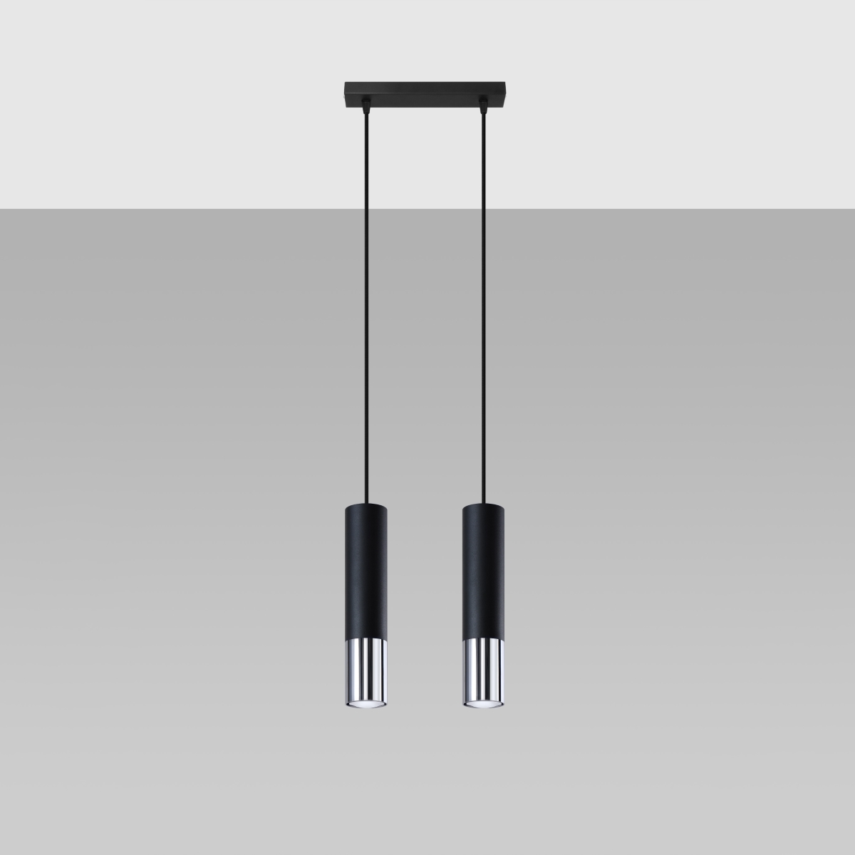 Compatível com 2 lâmpadas LED GU10 (não incluídas), proporciona uma iluminação eficiente e direcionada, ideal para realçar áreas específicas como mesas de jantar, ilhas de cozinha, corredores ou zonas de convívio. A sua estrutura equilibrada distribui a luz de forma uniforme, criando um ambiente acolhedor e sofisticado.
