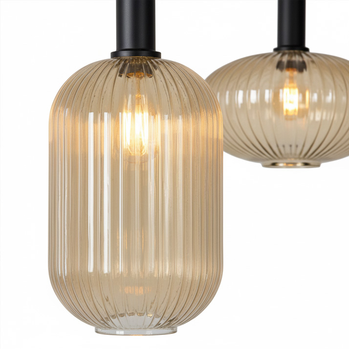 Compatível com 7 lâmpadas LED E27 (não incluídas), garante uma iluminação ampla, versátil e eficiente, ideal para salas de estar, áreas de refeição ou espaços de receção que necessitam de destaque e de uma atmosfera elegante. O equilíbrio entre o brilho do dourado e a leveza do vidro cria um efeito visual único, reforçando a sensação de requinte no espaço.