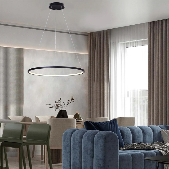 O Candeeiro de Suspensão Minimal 32W Preto CCT3 destaca-se pelo seu design em forma de anel, combinando estética moderna com elevada funcionalidade. Esta peça premium oferece um toque de sofisticação e leveza a qualquer ambiente, sendo ideal para salas de estar, quartos ou zonas de refeições.