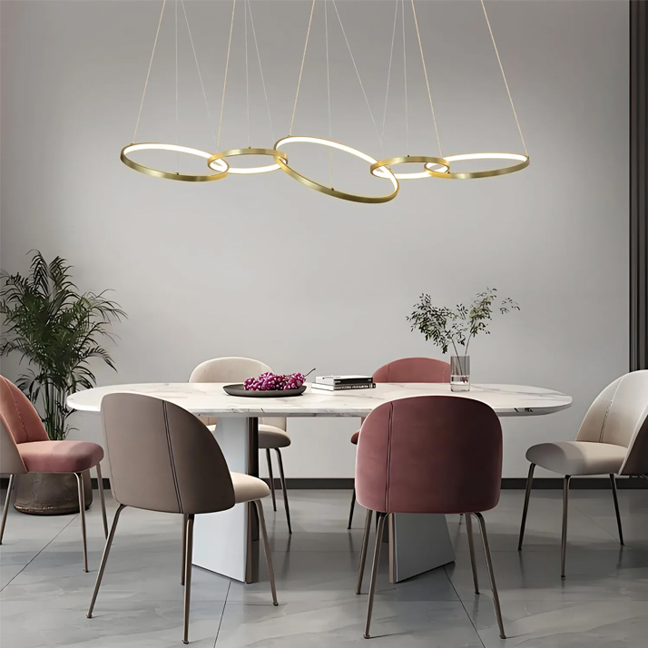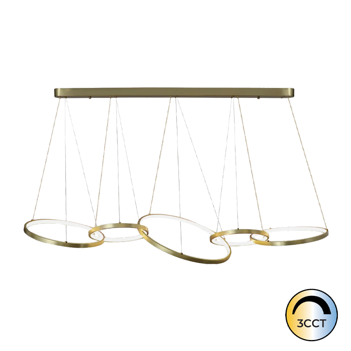 O Candeeiro de Suspensão Minimal 48W Dourado CCT3 combina design moderno e sofisticação, sendo uma escolha perfeita para espaços que exigem elegância e funcionalidade. A sua estrutura em alumínio dourado confere um toque luxuoso e contemporâneo, ideal para salas de estar, escritórios ou áreas de receção.