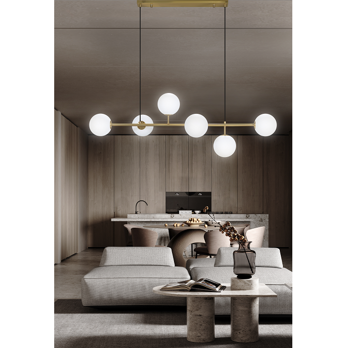 Compatível com 6 lâmpadas LED G9 (não incluídas), proporciona uma iluminação eficiente e envolvente, ideal para salas de jantar, salas de estar, halls de entrada ou espaços de receção, onde se pretende destacar o ambiente com estilo e luminosidade.