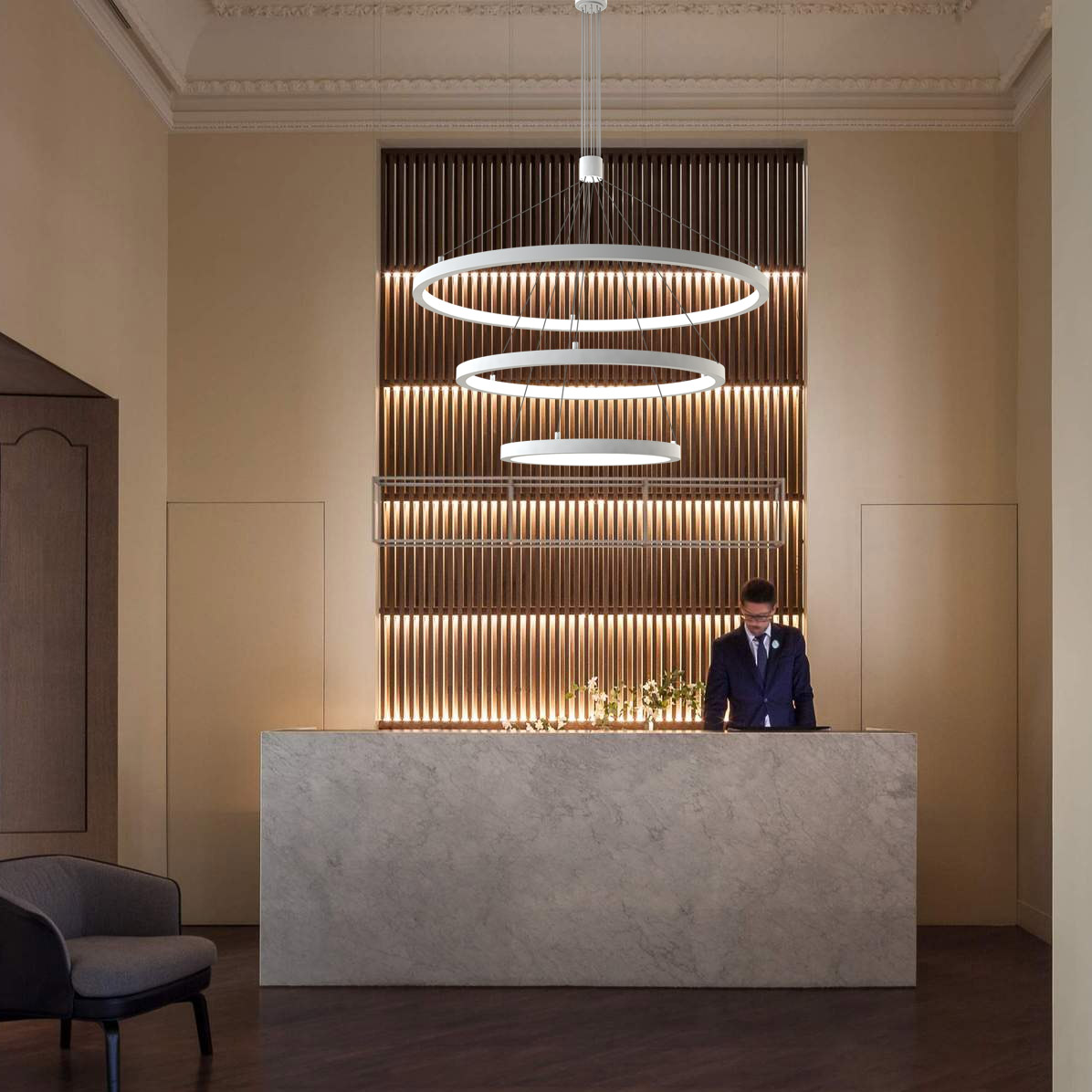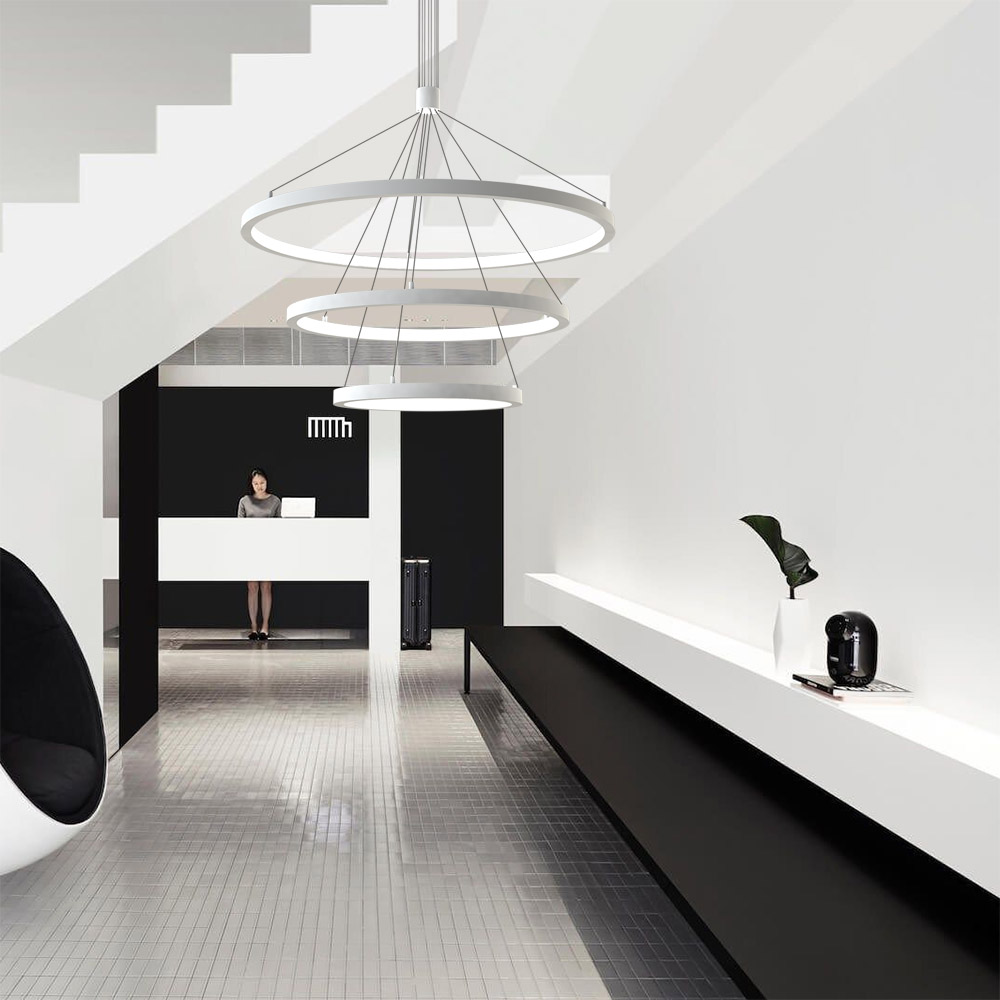 O Candeeiro de Suspensão Tricycle é uma luminária pendente minimalista que combina design limpo e arquitetónico com a mais recente tecnologia LED. A peça é um verdadeiro ponto de atração devido à sua estrutura de três aros circulares.
