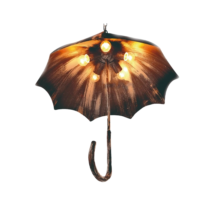 Adicione um elemento de surpresa e charme vintage ao seu espaço com o nosso Candeeiro de Suspensão Guarda-chuva Premium em tom Castanho rústico. Esta luminária é uma peça de design inusitado e altamente decorativo, ideal para quem procura uma iluminação de destaque que seja um verdadeiro ponto de conversa. Inspirada no estilo Industrial Vintage, a cúpula em metal imita a forma de um guarda-chuva aberto e desgastado, com um acabamento em Castanho que simula a ferrugem ou a madeira envelhecida.