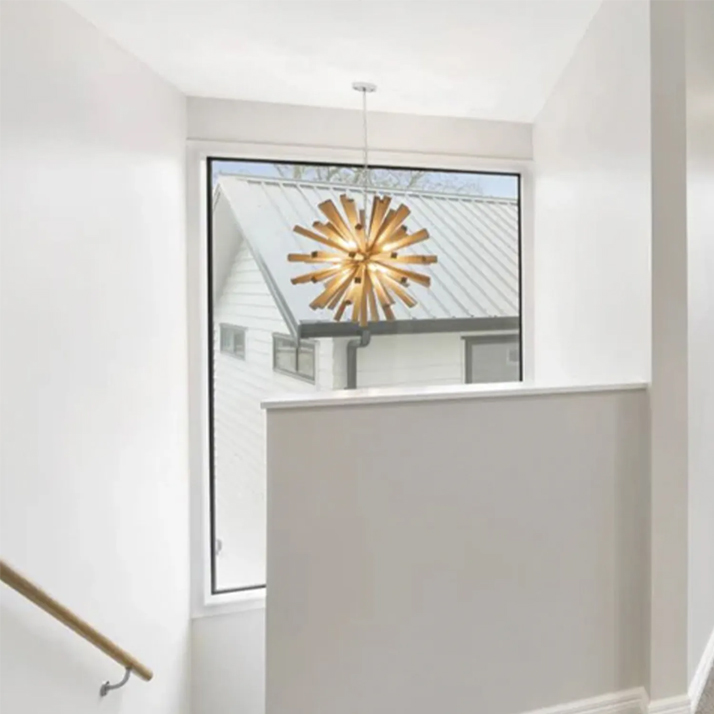 Construído em madeira de alta qualidade, apresenta um estilo minimalista e contemporâneo que se adapta facilmente a ambientes sofisticados e acolhedores. O tom quente da madeira proporciona uma iluminação envolvente e confortável, perfeita para salas de estar, salas de jantar ou espaços comerciais.