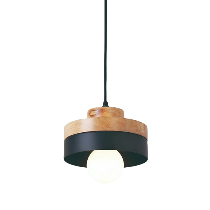 O seu design cilíndrico e limpo segue as tendências de decoração de interiores, garantindo uma estética atemporal. A cúpula preta, com a sua borda proeminente, direciona a luz de forma eficaz, proporcionando uma excelente iluminação de tarefa quando instalado sobre superfícies. O uso da Madeira na parte superior equilibra o metal, garantindo um toque natural e diminuindo a sensação de rigidez.
