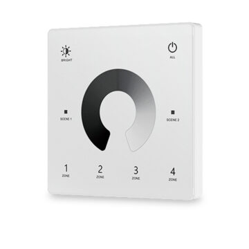 O Comando de Parede para Controlador Monocolor 4 Zonas é um acessório sofisticado e altamente funcional, concebido para oferecer controlo total da iluminação LED monocolor de forma prática e elegante. Alimentado por uma pilha CR2032, garante uma autonomia de até 1 ano em modo standby, sem necessidade de manutenção frequente.