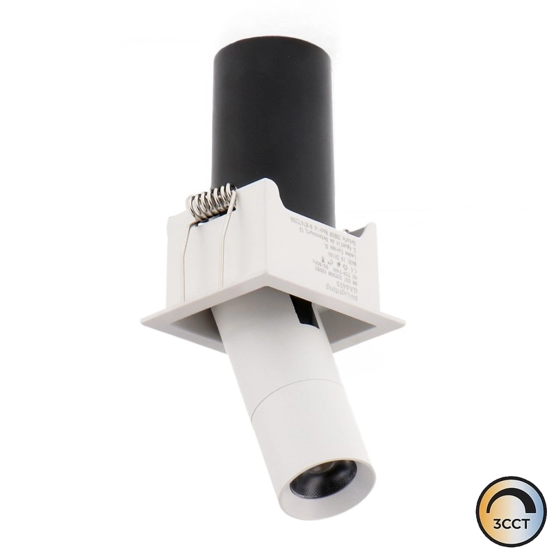 A sua versatilidade é definida pela tecnologia CCT3, que permite selecionar a temperatura de cor entre 3000K, 4000K ou 6500K, adaptando o ambiente desde um tom quente e relaxante até um branco frio e funcional. Com uma potência de 5W e uma luminosidade de 400 lm, o foco emite luz num ângulo de 36º, sendo especialmente eficaz para criar iluminação de realce em corredores, salas ou espaços comerciais.