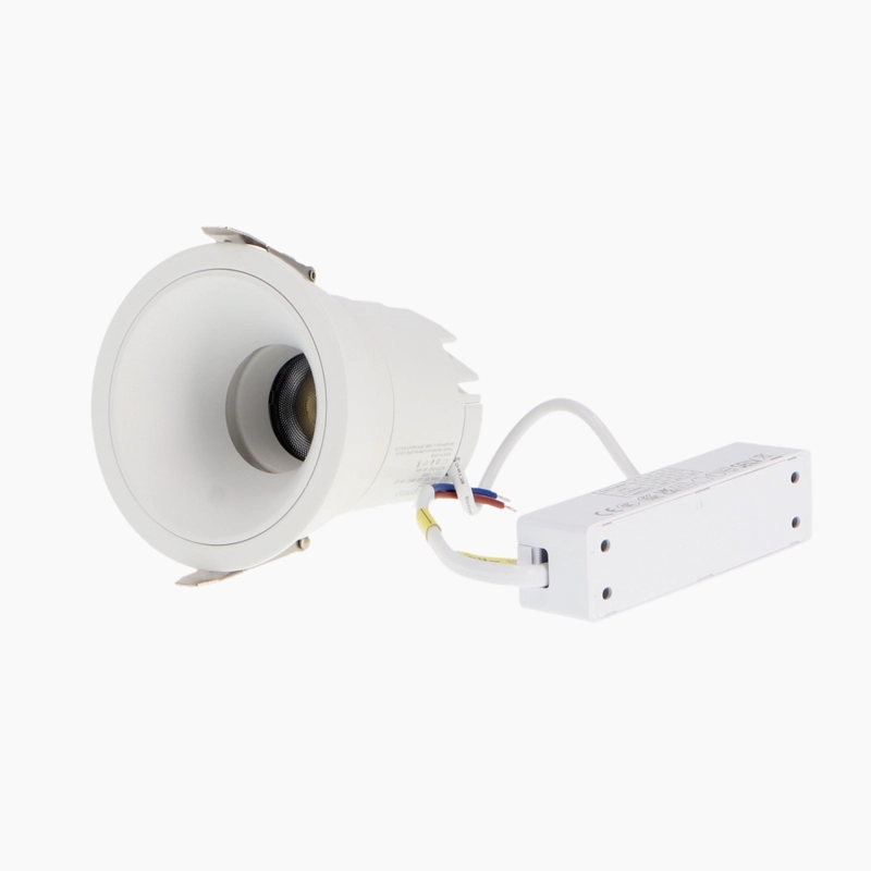 Com um feixe de luz focado num ângulo de 36º, este downlight projeta uma iluminação nítida e direcionada, sendo ideal para destacar elementos decorativos ou criar pontos de luz focalizados com grande eficiência. Com um índice de proteção IP20, é recomendado para áreas interiores secas e utiliza um sistema de fixação por molas metálicas robustas, garantindo uma instalação embutida estável, segura e com um acabamento técnico de excelência.