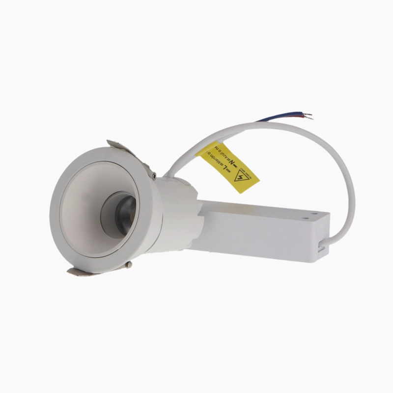 Com um feixe de luz focado num ângulo de 36º, este downlight é ideal para iluminação de acento, garantindo uma projeção de luz nítida e direcionada para valorizar detalhes decorativos. Possui um índice de proteção IP20, sendo indicado para zonas interiores secas, e conta com um sistema de fixação por molas metálicas que assegura uma instalação embutida simples, estável e com um acabamento estético de nível profissional.