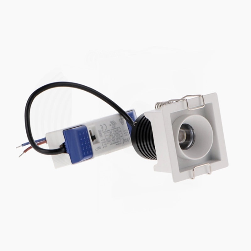O Downlight LED Quadrado Branco 5W é uma luminária de encastrar com um design geométrico e clean, ideal para proporcionar uma iluminação de acento discreta e moderna em espaços interiores. Construído em alumínio de alta qualidade com acabamento em branco, este modelo garante uma gestão térmica eficiente, essencial para a durabilidade dos seus componentes LED.
