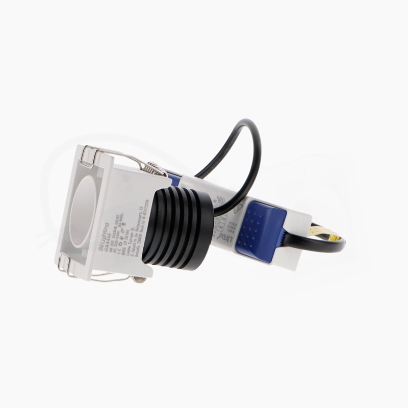 Este modelo apresenta um sistema de encastrar com molas de fixação robustas, permitindo uma instalação rápida e um acabamento nivelado no teto falso. Com um índice de proteção IP20, é indicado para áreas interiores secas onde se pretenda uma solução de iluminação funcional com uma estética minimalista e profissional.