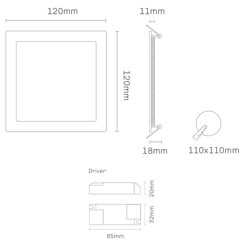 Para a instalação técnica em tetos falsos, este modelo quadrado requer uma dimensão de corte de 110 x 110 mm. A fiabilidade do dispositivo é reforçada pelo seu índice de proteção IP44, que oferece resistência contra a entrada de objetos sólidos e salpicos de água. Esta característica torna-o perfeitamente apto para aplicação em diversos espaços, incluindo áreas com humidade moderada como casas de banho e cozinhas, garantindo a proteção dos componentes internos.