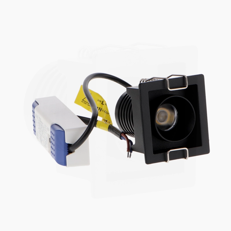 Downlight LED Quadrado Preto 5W é uma luminária de encastrar que combina um design geométrico sofisticado com alta eficiência tecnológica, ideal para criar pontos de luz focalizados em interiores modernos. Construído em alumínio de alta qualidade com acabamento em preto, este modelo oferece uma estética contemporânea e garante uma excelente dissipação térmica, preservando a vida útil do sistema LED.