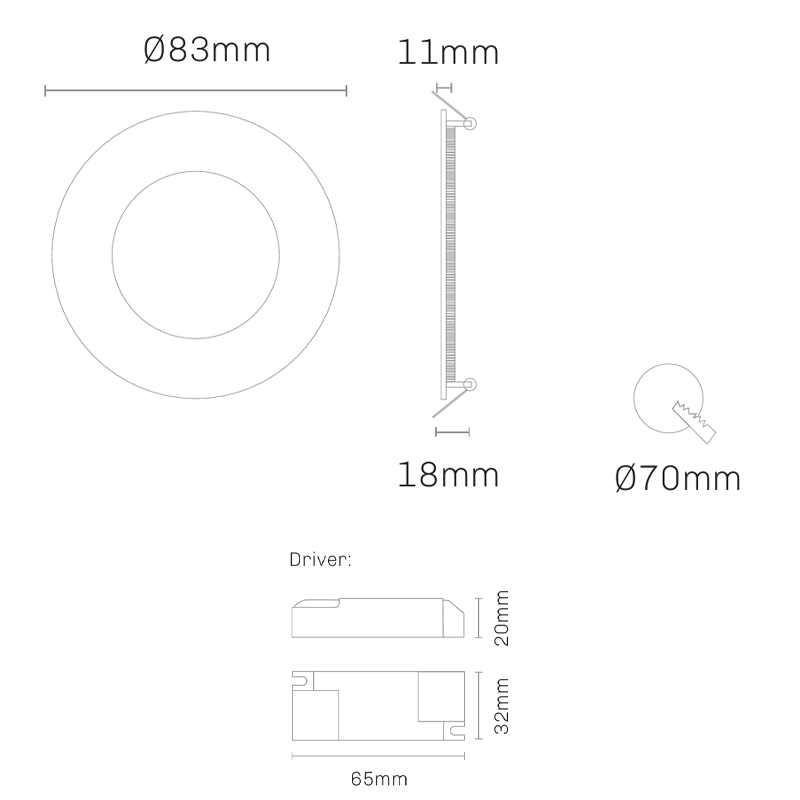 A sua instalação técnica em tetos falsos requer uma dimensão de corte de Ø70 mm. Adicionalmente, o seu índice de proteção IP44 confere-lhe resistência contra salpicos de água e poeiras, tornando-o uma escolha segura para aplicação não só em zonas secas, mas também em áreas com humidade moderada, como casas de banho e cozinhas.
