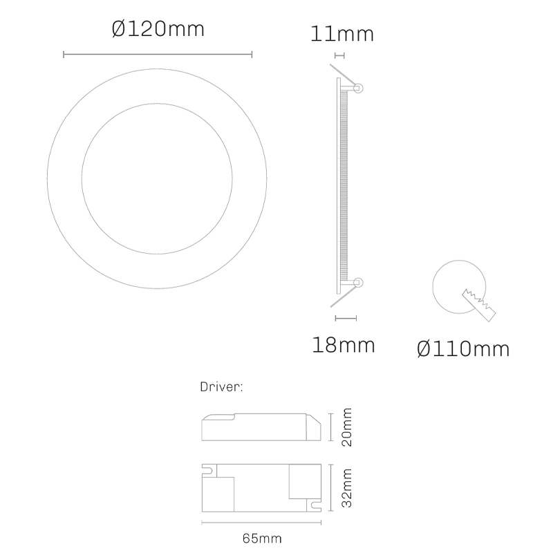 Para a instalação técnica em tetos falsos, este modelo requer uma dimensão de corte de Ø110 mm. A fiabilidade do equipamento é reforçada pelo seu índice de proteção IP44, que oferece resistência contra salpicos de água e poeiras, tornando-o apto para instalação em zonas húmidas, como casas de banho e cozinhas, além de áreas convencionais como salas e corredores.
