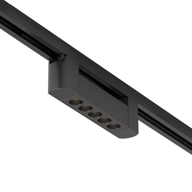 Com um acabamento elegante na cor preta, este foco integra-se perfeitamente em decorações de estilo industrial ou contemporâneo, mantendo uma presença discreta no teto. Sendo compatível com carris monofásicos, oferece a flexibilidade de ser posicionado e movido ao longo da calha conforme as necessidades de iluminação mudam. É importante referir que a sua classificação IP20 limita o seu uso a ambientes interiores secos, garantindo a segurança dos componentes eletrónicos contra objetos sólidos, mas sem proteção contra a humidade.