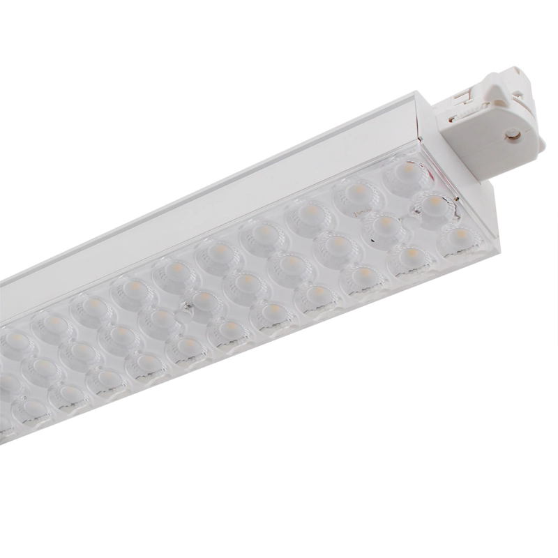O Foco Linear LED para Calha Trifásica 60W na cor branca é a solução de iluminação técnica mais potente da sua linha, especificamente desenvolvida para garantir uma cobertura luminosa excecional em espaços comerciais e profissionais de grande escala, como supermercados e centros comerciais. Equipado com a tecnologia de ponta do chip Bridgelux, este foco assegura um desempenho consistente e uma durabilidade superior, minimizando custos operacionais e de manutenção a longo prazo.