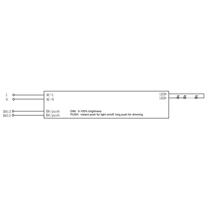 A Fonte de Alimentação Lifud Dimável DALI/Push DT6 24V 150W IP20 é uma unidade de controlo de alta potência, desenhada para gerir sistemas de iluminação LED de grande escala que operam a uma tensão constante de 24V DC. Com uma capacidade de 150W, este driver é ideal para alimentar extensas metragens de fita LED monocromática, garantindo um desempenho estável e uma regulação de intensidade precisa através do protocolo digital DALI (DT6) ou da funcionalidade Push (botão de pressão).