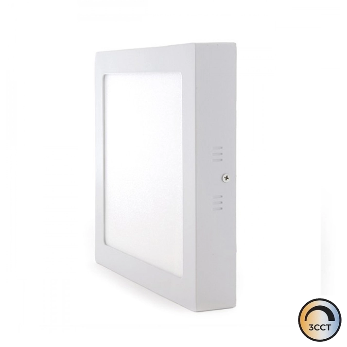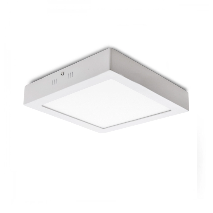 A Placa LED Quadrado Saliente Branco 24W CCT3 é uma solução de iluminação potente e robusta, ideal para grandes superfícies onde a instalação embutida não é viável. Fabricada em alumínio, esta luminária garante uma gestão térmica de alta eficiência, fator determinante para manter a estabilidade da sua potência de 24W e assegurar um fluxo luminoso de 1920lm com máxima durabilidade.