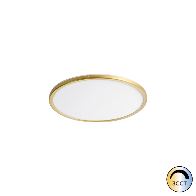 O Plafon Orbit Dourado 18W CCT3 é uma peça de iluminação de teto que combina funcionalidade moderna com um acabamento estético sofisticado. Desenvolvido em policarbonato resistente, este modelo apresenta um design circular com um aro em dourado, ideal para criar ambientes elegantes em espaços residenciais ou comerciais.