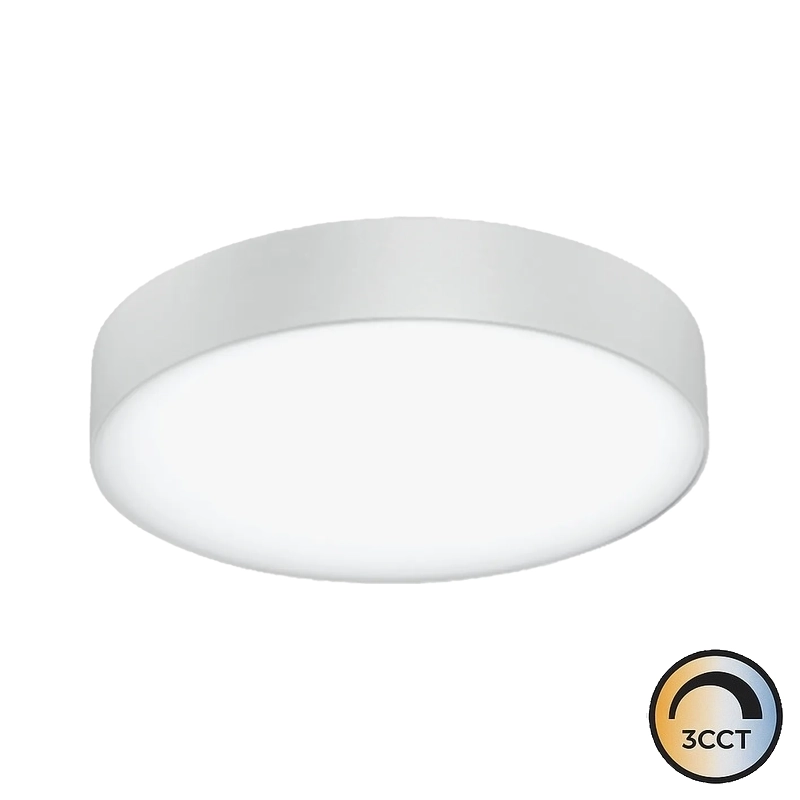 O Plafon LED Redondo Branco 30W CCT3 é uma solução de iluminação de teto robusta e versátil, projetada para oferecer uma performance luminosa de alta qualidade tanto em espaços residenciais como comerciais. Fabricado em alumínio, este plafon apresenta um acabamento branco clean e minimalista que se integra perfeitamente em qualquer teto, garantindo simultaneamente uma excelente dissipação de calor para os componentes internos.