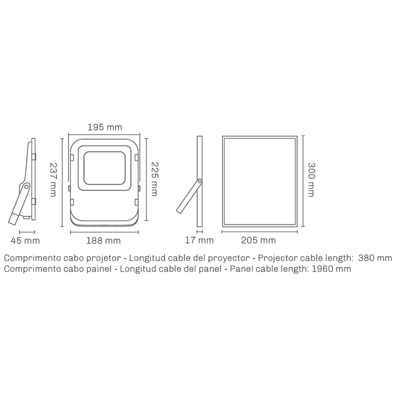Com um ângulo de abertura de 120º, o projetor oferece uma cobertura de luz ampla e uniforme. A inclusão de um comando à distância permite ao utilizador gerir o funcionamento do equipamento de forma cómoda, sem necessidade de acesso físico ao projetor após a montagem. É uma unidade de baixa manutenção, exigindo apenas a limpeza ocasional do painel solar para assegurar a máxima eficácia na captação de energia.